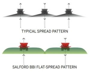| Designed for fleets, Salford’s BBI Trooper pull-type spreader is an easy-to-operate fertilizer applicator for precision application and towing between fields. Built for durability, this machine is 10 feet long and is ready to spread fertilizer on small and medium-sized farms. The Trooper spreader is capable of spreading granular fertilizer up to 60 feet with the ground drive package and up to 80 feet with the hydraulic spinner option. Both options deliver a consistently wide, flat spread pattern. The mechanical, ground-wheel-drive design is matched with Salford precision and flotation tires to prevent soil compaction, making this applicator ideal for a variety of settings, from row crops to sod and turf farms. |